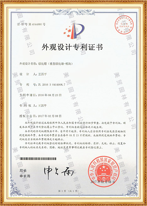 6686体育官网下载有限公司荣获多项专利及证书,包括外观设计,园林设计,产品设计等,产品经过国家质监局检测合格发放质检合格证书。